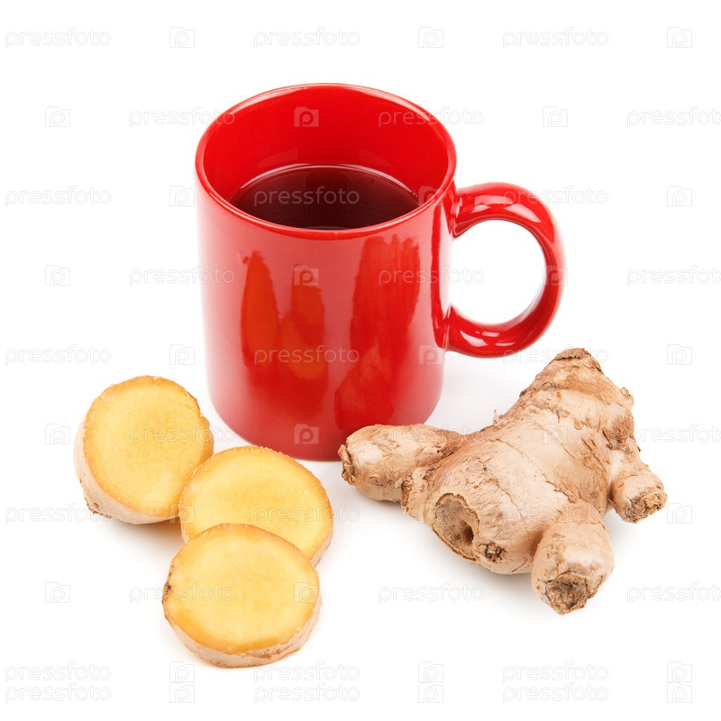 Корень имбиря и чашка чая