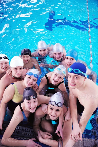 Счастливые подростки в плавательном бассейне