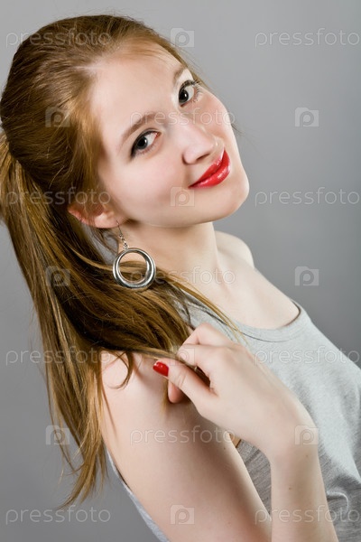 Молодая девушка в серой майке
