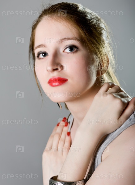 Молодая девушка в серой блузке