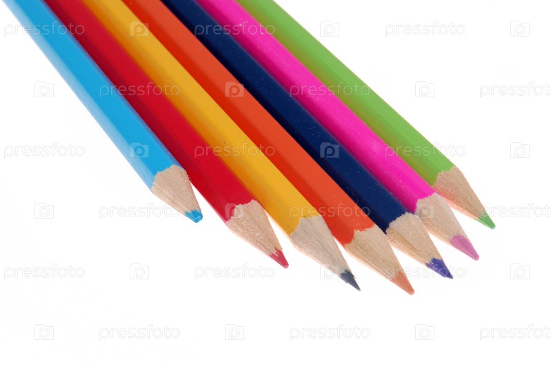 Набор цветных карандашей на белом фоне