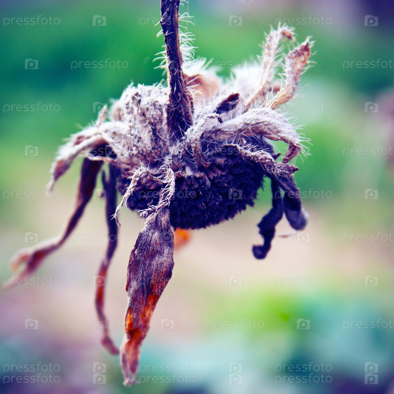 Прошлогодний сухой цветой подсолнечника крупным планом