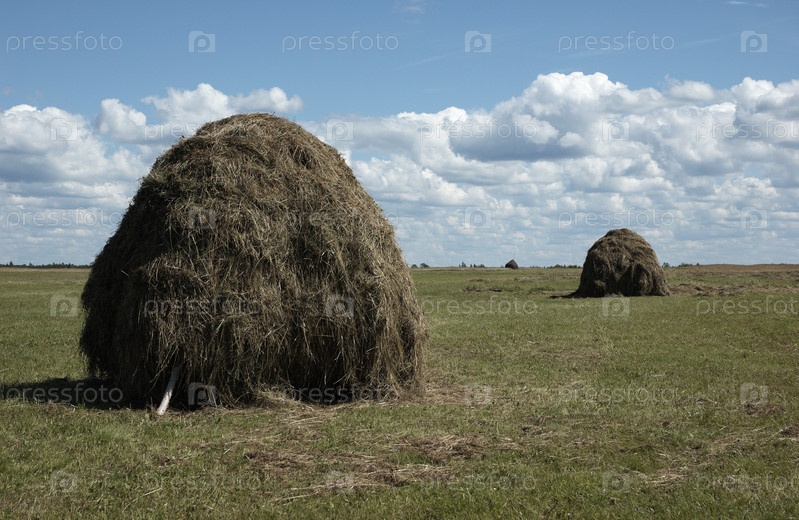 Два стока сена на лугу