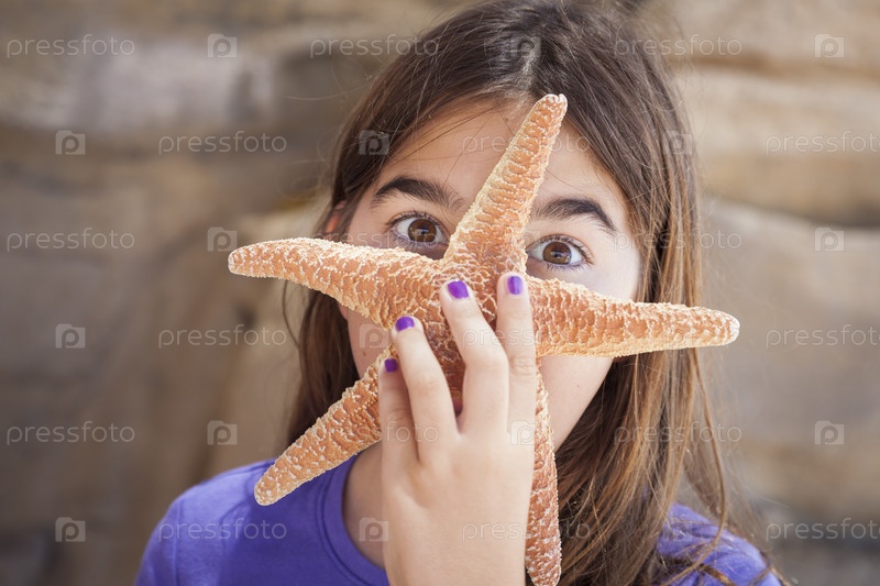 Девочка играет с морской звездой