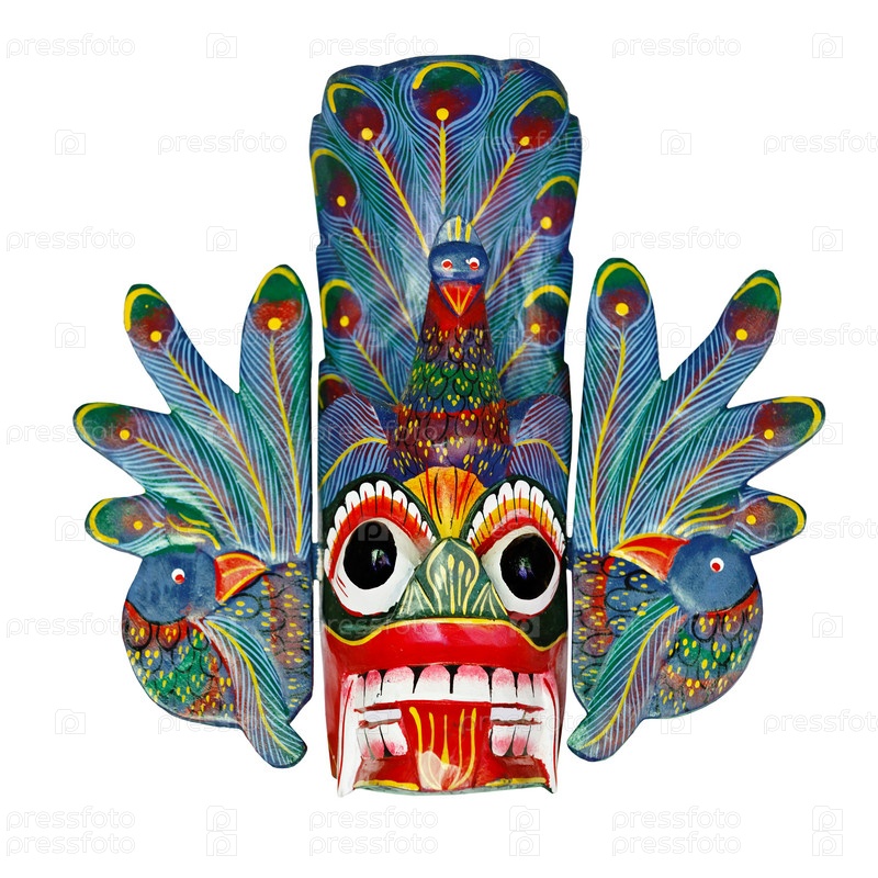 Старая яркая деревянная маска со Шри-Ланки