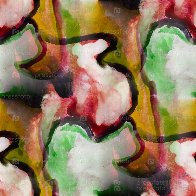 Зеленый, коричневый бесшовный абстрактный акварельный фон в стиле кубизма