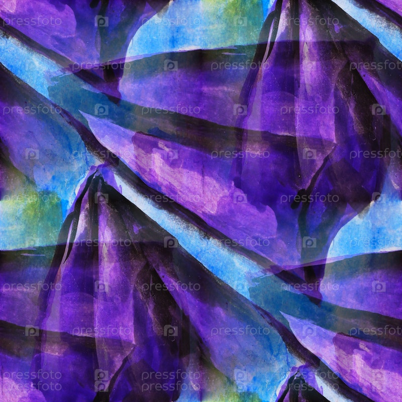 Фиолетовый, синий бесшовный абстрактный акварельный фон в стиле кубизма