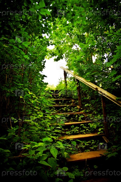 Деревянная лестница в чаще леса