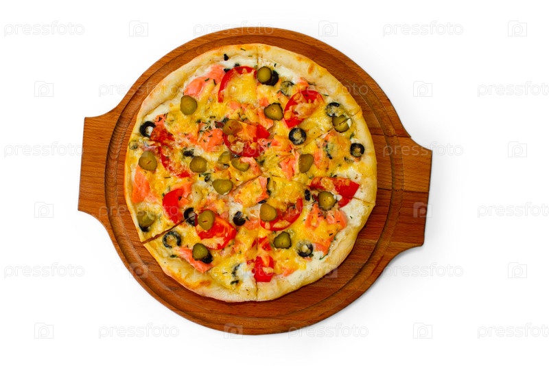 Итальянская пицца с огурцом, сыром и томатами, изолированная на белом фоне