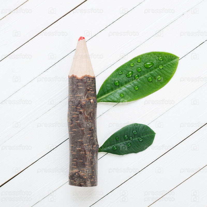 Карандаш из ветки с листьями