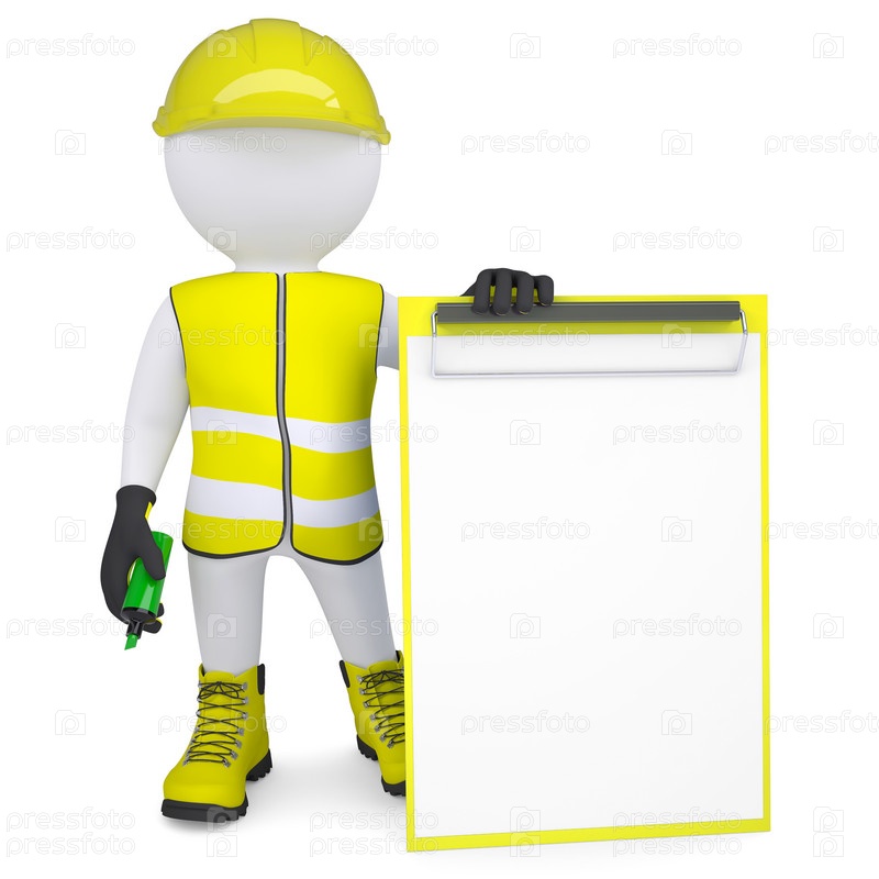 3D-человек в комбинезоне с контрольным списком и маркером