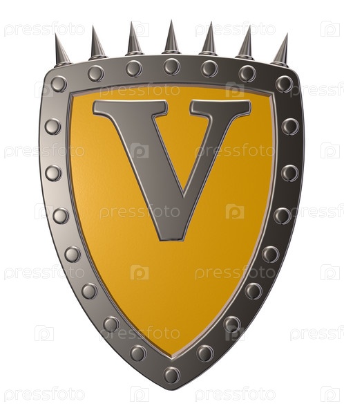 Щит с буквой V - 3D иллюстрация