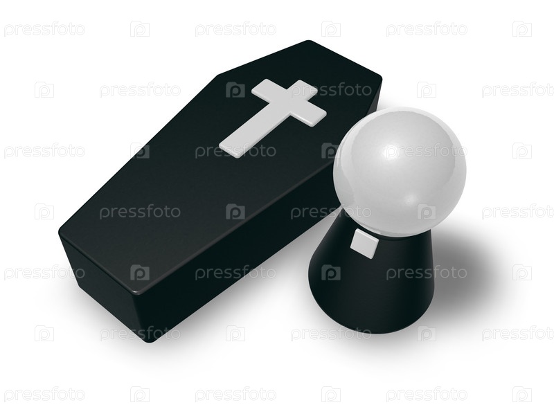 Гроб и человечек - 3D иллюстрация