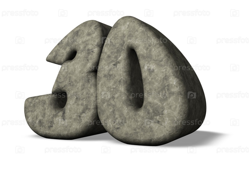 Число 30 на белом фоне - 3D иллюстрация