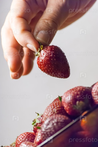 Рука держит красную спелую клубнику