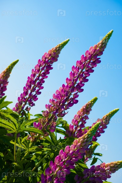 Дельфиниум на поляне в солнечный день