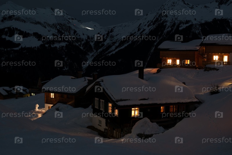 Горонолыжный поселок в ночное время