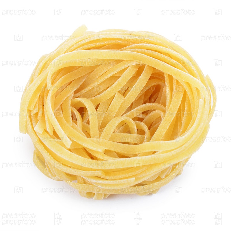 Итальянские макароны тальятелле, изолированные на белом фоне