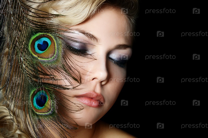 Красивая женщина с перьями павлина