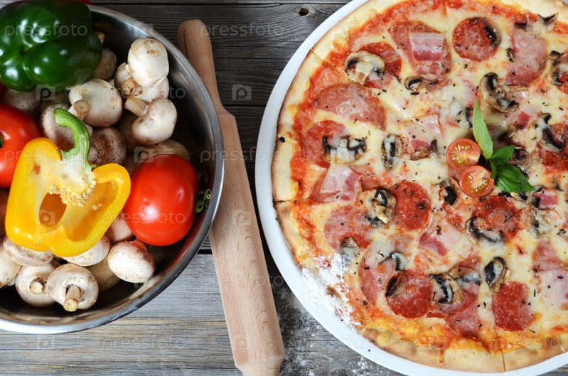 Итальянская пицца с ветчиной и грибами
