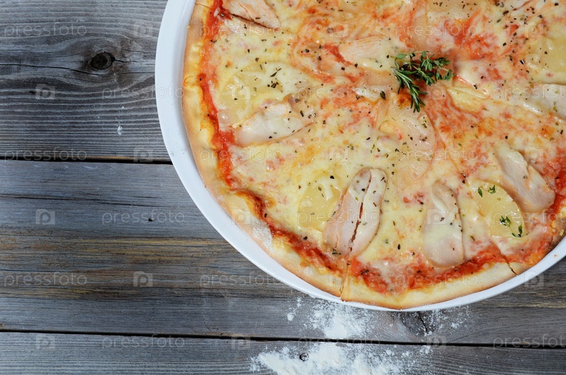 Сладкая пицца с курицей и ананасами