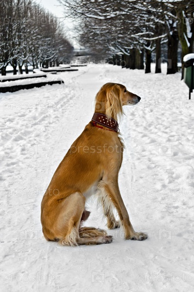 Салюки (персидская борзая) на зимней прогулке