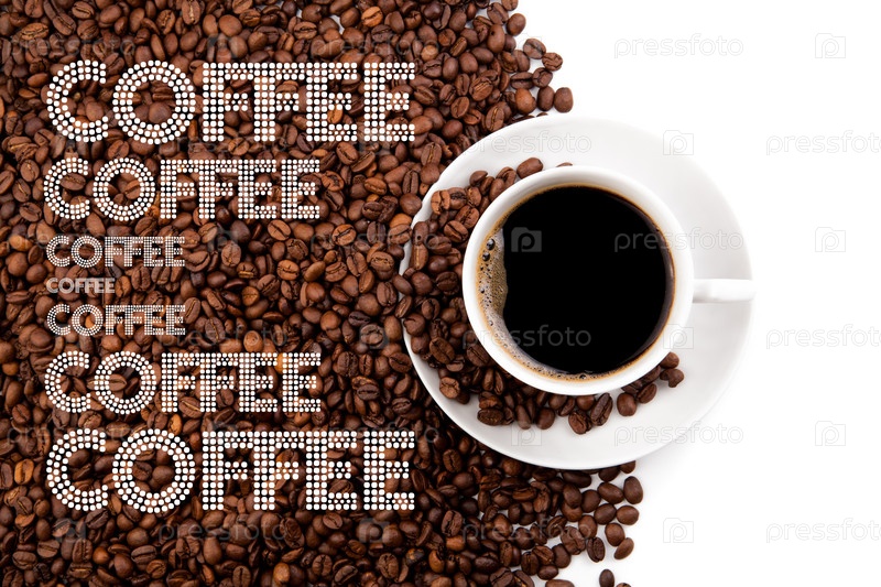 Чашка черного кофе с жареными бобами