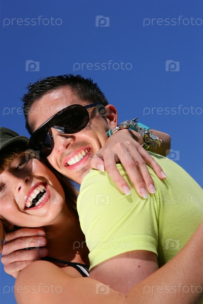 Обнимающаяся веселя пара