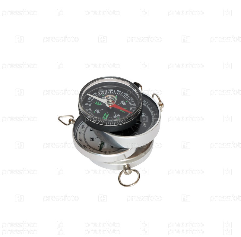 Несколько компасов на белом фоне