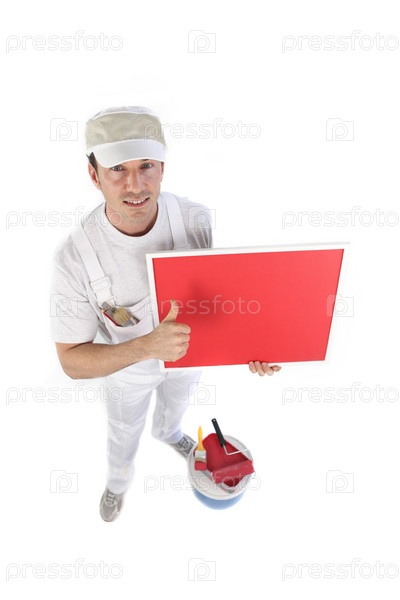 Рабочий с красным баннером