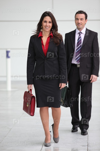 Пара в костюмах с портфелями
