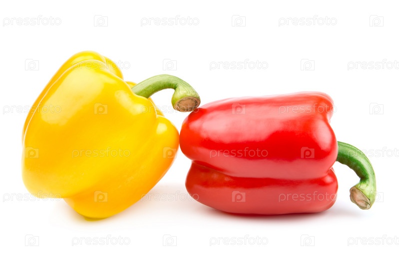 Желтый и красный перец, изолированный на белом фоне