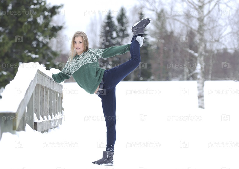Девушка выполняет гимнастические упражнения