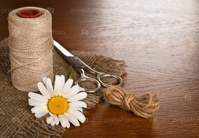 Ножницы, шнур и ромашка