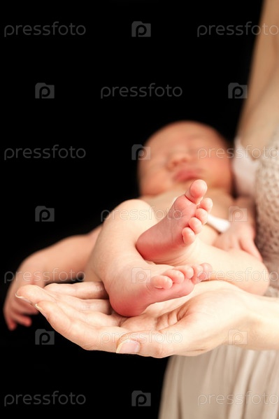 Женщина держит новорожденного сына
