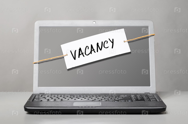 Ноутбук с запиской "вакансия"