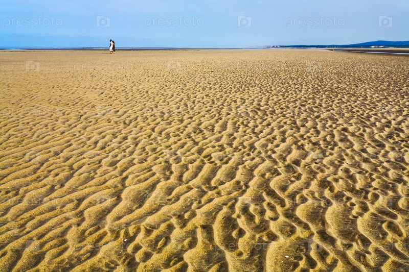 Мокрый песок во время отлива на пляже на побережье Ла-Манша