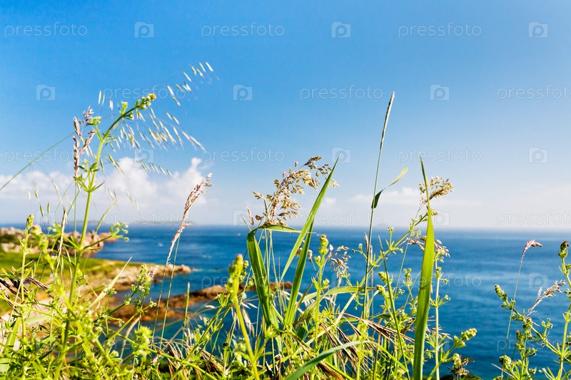 Зеленая трава крупным планом на Атлантическом побережье