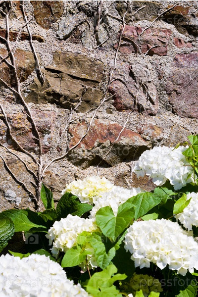 Белая гортензия у бретонского дома