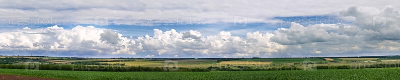 Сельскохозяйственные поля и небо с кучевыми облаками
