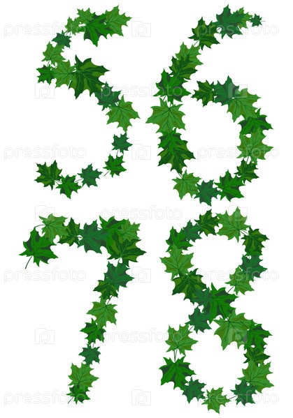 Набор цифр из летних кленовых листьев