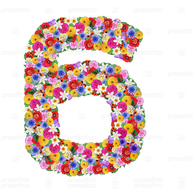 Цифра 7 из цветов, изолированная на белом фоне