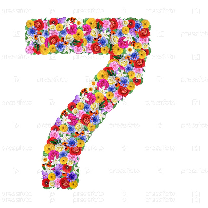 Цифра 7 из цветов, изолированная на белом фоне