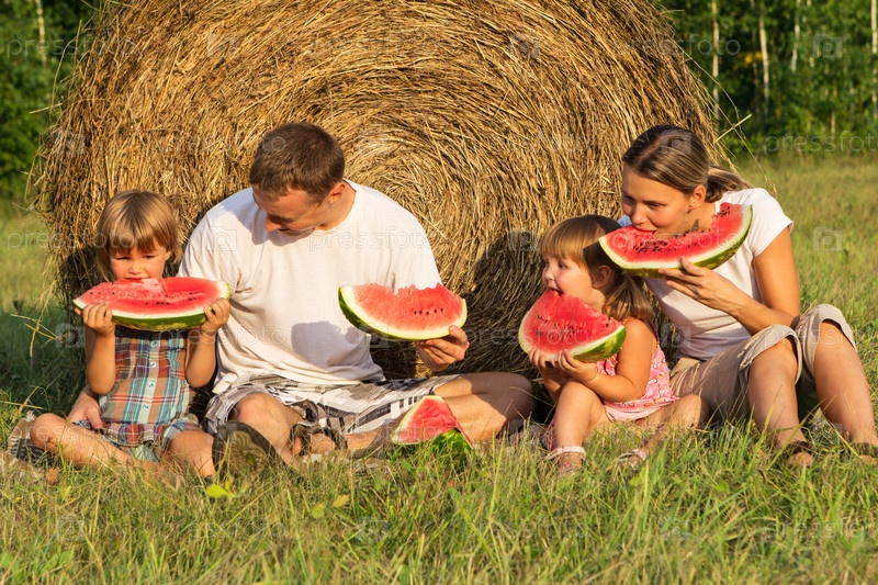 Семья на пикнике в поле