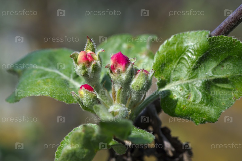 Распускающиеся бутоны яблони