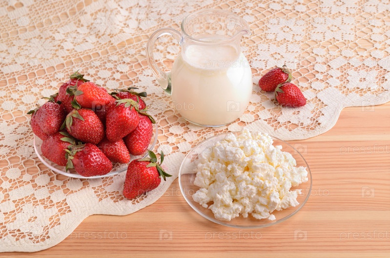Клубника, молоко и творог