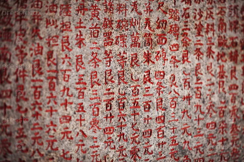 Иероглифы на каменной табличке в старом буддийском храме