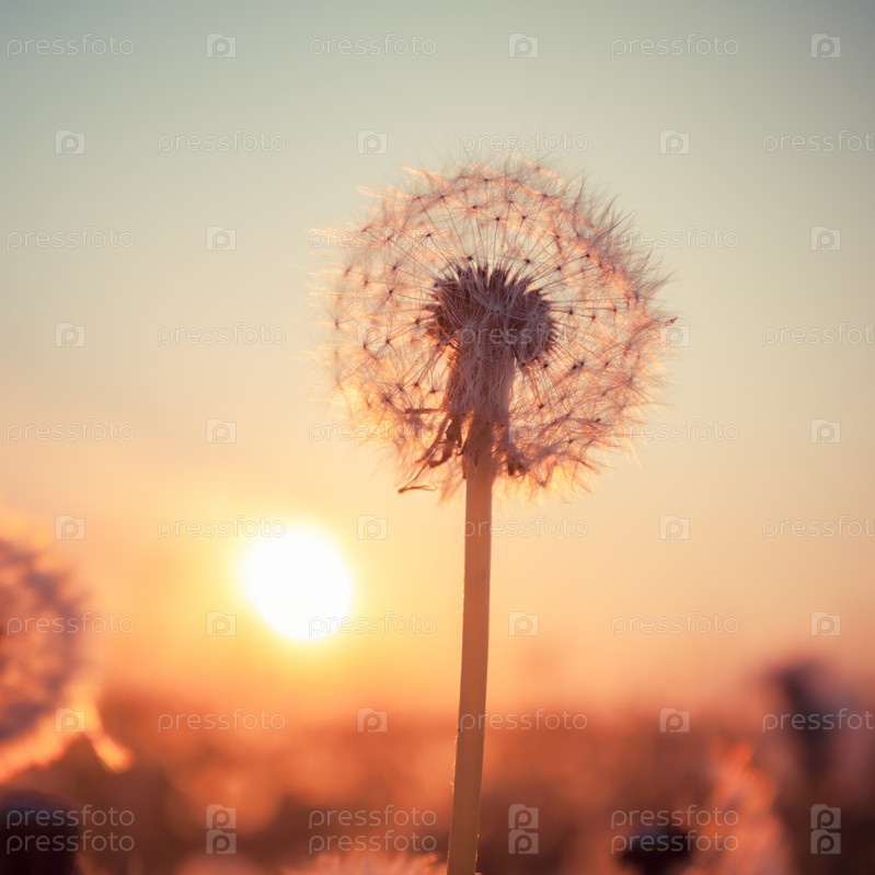 Поле и одуванчик на закате