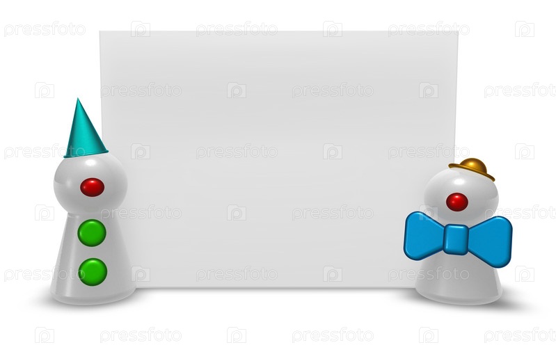 Снеговики и баннер - 3D иллюстрация