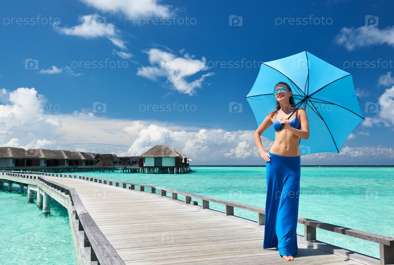 Женщина на пляже на Мальдивах